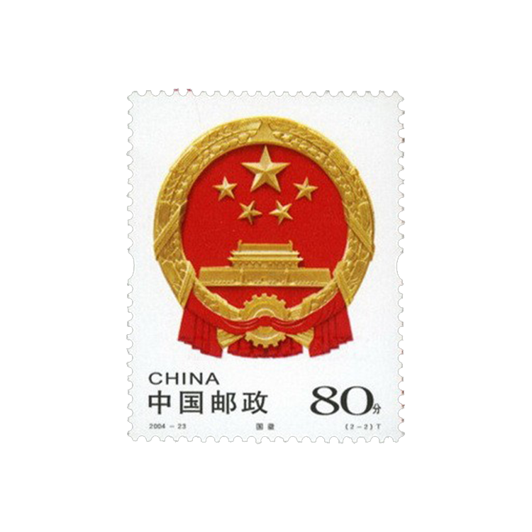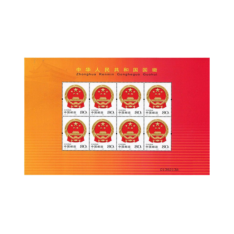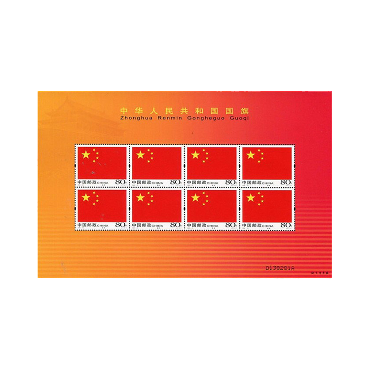 2004年9月30日,为庆祝中华人民共和国成立55周年,国家邮政局发行了《中华人民共和国国旗国徽》特种邮票,全套2枚,同时发行小版张(版式二)1套1版。