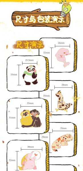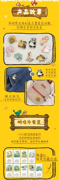 1、以票面上的动物为原型进行插画创作,徽章采用珐琅工艺,精湛细节凸显动物造型的可爱生动。