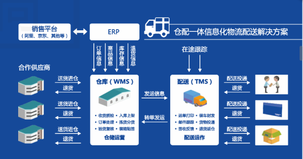 POSTWMS系统可以根据客户的个性化需求,为客户定制个性化的信息系统解决方案,目前POSTWMS系统已经和主流的ERP厂商完成了对接,包括百胜、管易、E店宝、网店管家等,和阿里、京东等主流电商平台也完成了对接,而且我们的TMS系统也已经与主流销售平台完成了对接,包括阿里、京东平台、唯品会等。