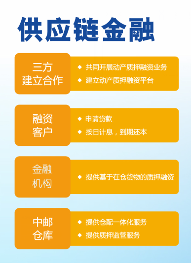 以中邮仓为基础,浙江EMS与多家金融机构合作,为入仓客户提供快速、便捷的质押融资服务。