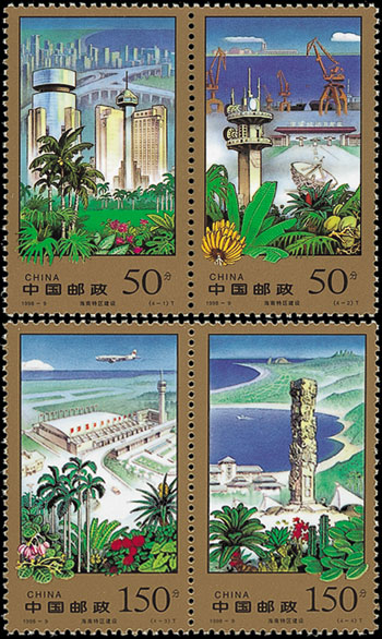 1988年4月13日,海南行政区从广东省划出,独立建省,海南省和海南经济特区正式成立。海南经济特区是中国最大的,也是唯一的省级经济特区。海南建省,是海南发展史上的一件大事,也是中国实行改革开放伟大事业中的一件大事。该套邮票由吴建坤设计,于1988年4月20日发行。