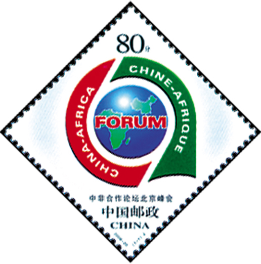 中非合作论坛是中国和非洲于2000年共同创立的集体磋商对话与合作机制。2006年11月中非合作论坛第三届部长级会议在北京召开,这次峰会是中非国家共叙友情、共商合作、共谋发展、共创未来的盛会。邮票由王虎鸣设计,2006年11月3日发行。