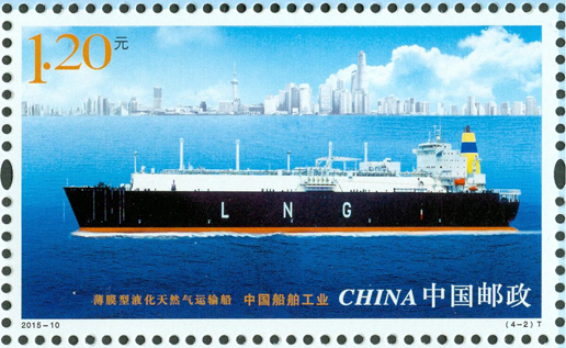 2015年6月3日,中国邮政发行《中国船舶工业》特种邮票1套4枚,内容分别为航天测量船、薄膜型液化天然气运输船、海上浮式生产储油船、导弹驱逐舰。该套邮票遴选了代表我国造船先进水平的、不同类型的船舶,以横向陈列的方式展示了船舶优美的形态和庞大的规模。画面气氛的营造不仅突出船舶工作的环境,还强调船舶在现代化建设中所承担的功能。邮票画面整体布局均衡、协调,层次清晰,空间感强。该套邮票由史渊设计。
