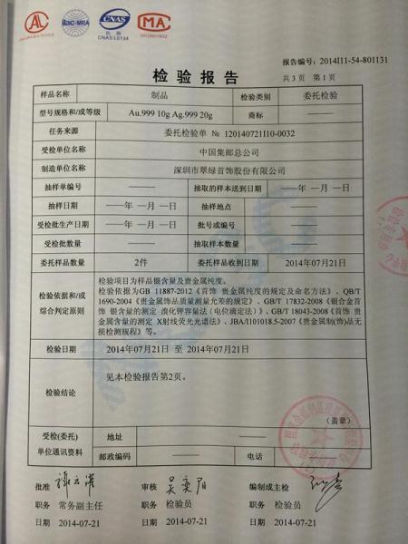 >首页>集邮信息>产品证书(历史)>《红楼梦》邮票金砖检验报告