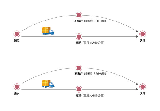通过设置廊坊区域集散点,缩短了距离,提高了次日递率。从保定到天津的邮路,原来的路由是保定到石家庄再到天津,里程为590公里,调整后的路由是由保定到廊坊再到天津,里程为249公里。从衡水到天津的路由是从衡水到石家庄再到天津,里程为586公里;调整后的路由从衡水到廊坊再到天津,里程为405公里(见图表3)。至4月底,标准快递菜鸟天地次日达线路达成率行业排名第2,较提速前上升了6名;快递包裹菜鸟天地次日达线路达成率行业排名第6,较提速前上升了7名(见图表4)。