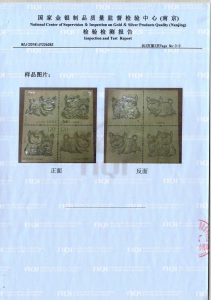 >首页>集邮信息>产品证书(历史)>《己亥年》邮票金质检报告