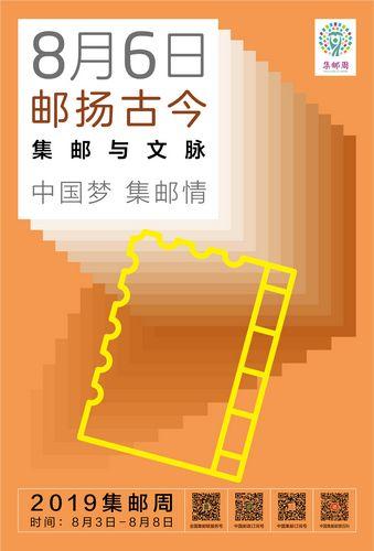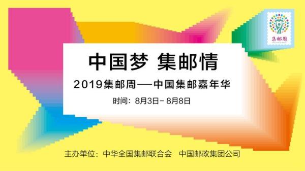 8月3日至8月8日,中国邮政集团公司和全国集邮联将联合举办“2019集邮周”活动。此次集邮周活动将延续“中国梦 集邮情”的主题,在6天的时间里,以集邮与旅游、集邮会员日、集邮与少年、集邮与文脉、集邮与爱情、集邮与生肖为主题开展不同的主题日活动。
