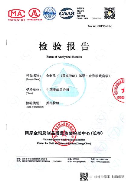 金制品(《国家战略》邮票 金券珍藏套装)检测报告