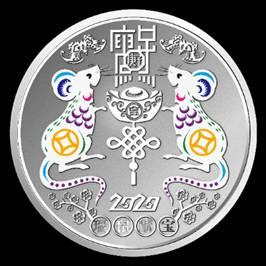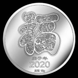 《国韵生肖·瑞鼠献宝》庚子年纪念册内含1枚纪念银章(足银999,18g/枚)和《庚子年》邮票版式一,银章以国际造币工艺精工重铸,融合浮雕、彩印、凸砂、镜面等多种工艺,纹理精湛,层次丰富,立体感强。银章正面的小鼠饱满精致,造型圆润可爱、机敏活泼,给人以喜气祥和的美感。吐宝鼠本身寓意能吐出取之不尽用之不竭的珍宝,而其身上绘代表财富的钱币图案和寓意丰衣足食。背景图案是代表吉祥的蝙蝠,寓意吉祥、幸福。银章背面则以剪纸造型的“福”字为主题图案。“福”字内融入生肖鼠与如意、祥云、竹子、寿桃、元宝、房屋等吉祥纹饰,寓意福禄寿喜财五福俱全,阖家吉祥安康。