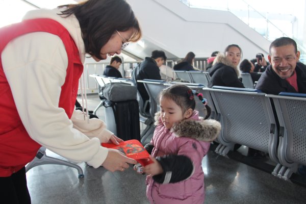 本次活动共有50余名青年志愿者参加,志愿者们在引导咨询、秩序维护、重点帮扶、便民利民、应急救援等工作中发挥了服务技能,关注快递小哥返乡服务需求,免费提供热水、颈枕和春联等,并为其购票、进站、补办临时身份证明等提供便利和指引服务,温暖了快递从业人员的回家路。