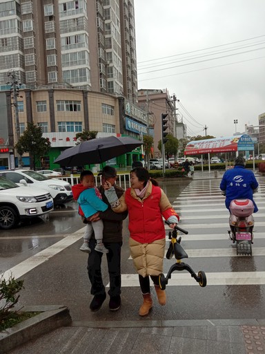 1月2~9日,邮储银行湖北省黄冈市分行组织30名青年志愿者在城市主干道交叉路口开展“文明交通劝导”志愿服务活动。志愿者身穿印有“中国志愿服务”字样的红马甲,统一佩戴“志愿者服务队”袖章,配合交警为行人宣讲交通法规知识,热情引导行人安全文明过马路。图为志愿者主动为一名抱小孩的行人撑伞、提东西,帮助其安全过马路。□闫阳春  摄影报道
