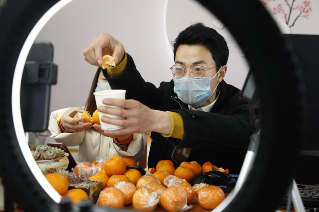 图为疫情期间直播销售柑橘   衢州市委宣传部供图