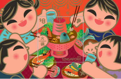 新加坡邮政2020年发行的《火锅》小型张,色彩艳丽,氛围热闹