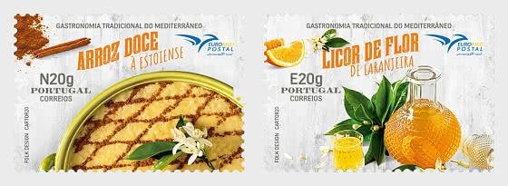 葡萄牙邮政2020年发行的《柑橘香味》邮票,左边是肉桂甜橙派,右边是橙子汽水