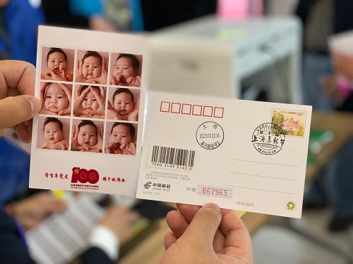 邮票党课现场,听众可选择自己喜欢的照片打印在邮政明信片背面,然后盖上纪念邮戳,并将其寄给亲朋好友。