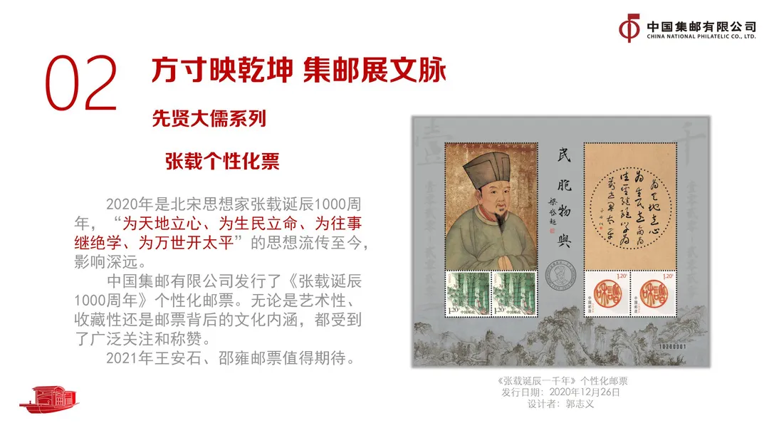 欲做集邮事先学集邮文化。集邮人一定要熟悉邮票、书信背后的历史和故事;邮票在设计上要尊重历史、尊重事实,在发行上则要对应事件与人物的重要时间节点。今年适逢王安石诞辰1000周年、邵雍诞辰1010周年,我们要在充分论证研究的基础上,通过邮票展现两位大儒的深邃思想和博大情怀。