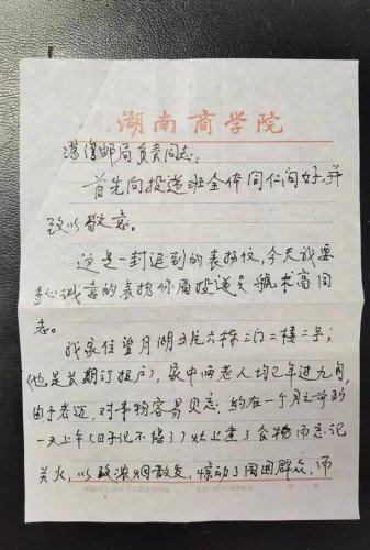 事发后老人再次虢术高,想给他送一个红包,但被虢术高拒绝。老人不知该如何表达谢意,于是手写了一份3页纸的感谢信,还做出一个可爱的举动:她找虢术高征订了一年的潇湘晨报——虽然家里已经订了报刊。