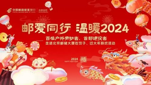 龙腾盛世春风起,福满人间喜气扬。邮储银行北京分行于龙年春节大年初一,举行“邮爱同行 温暖2024”新春大联欢活动,邀请来自首都各行各业的百名户外劳动者、首都建设者走进北京邮储大厦一起吃饺子,过大年。