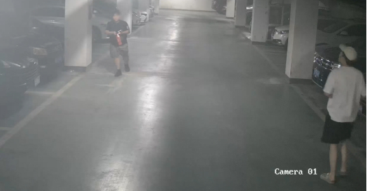 王国君回忆当时场景时说:“我正在送快递,突然看到地下车库冒浓烟,赶紧跑过去查看,发现一辆私家车已经起火,火势蔓延得特别快。我心想再不行动,整栋楼都可能受影响,就冲上去用灭火器控制火势。”当被问及当时心中所想时,他坚定回应:“多控制一点火势,群众安全就多一份保障。我之前参加过单位消防培训,会用灭火器也懂些应急知识,心里有底。”
